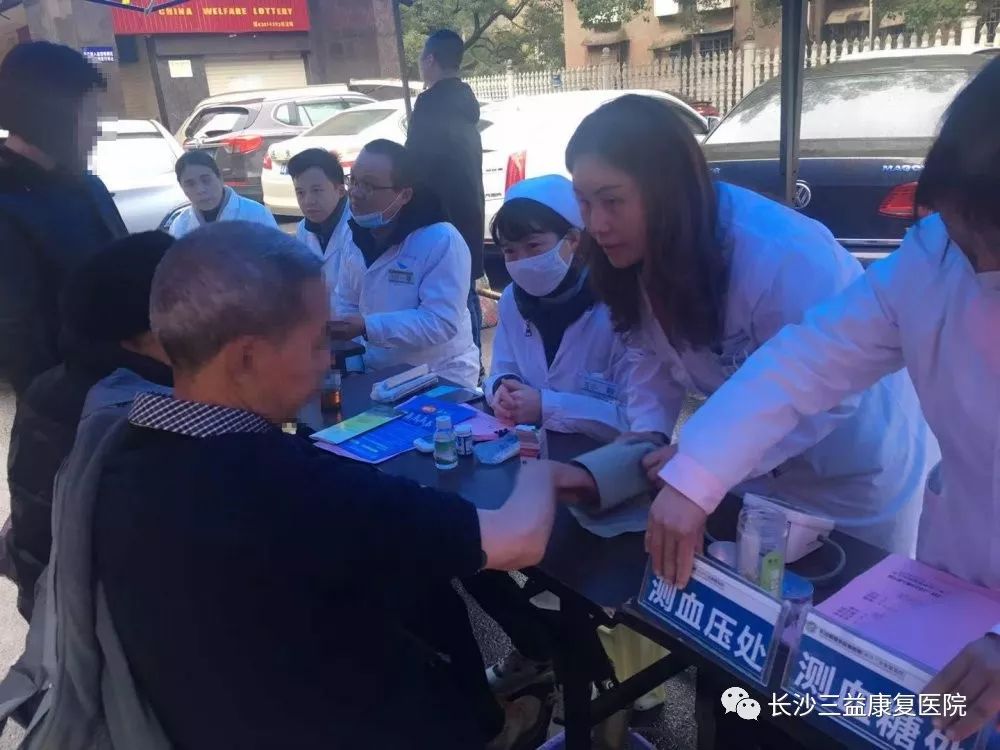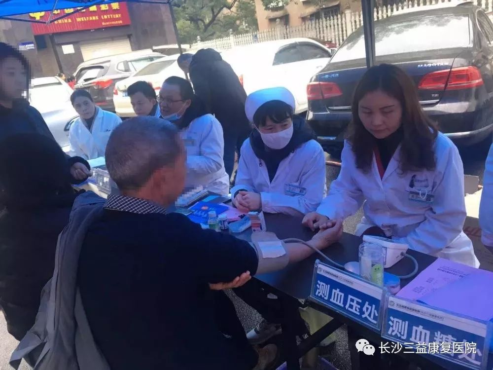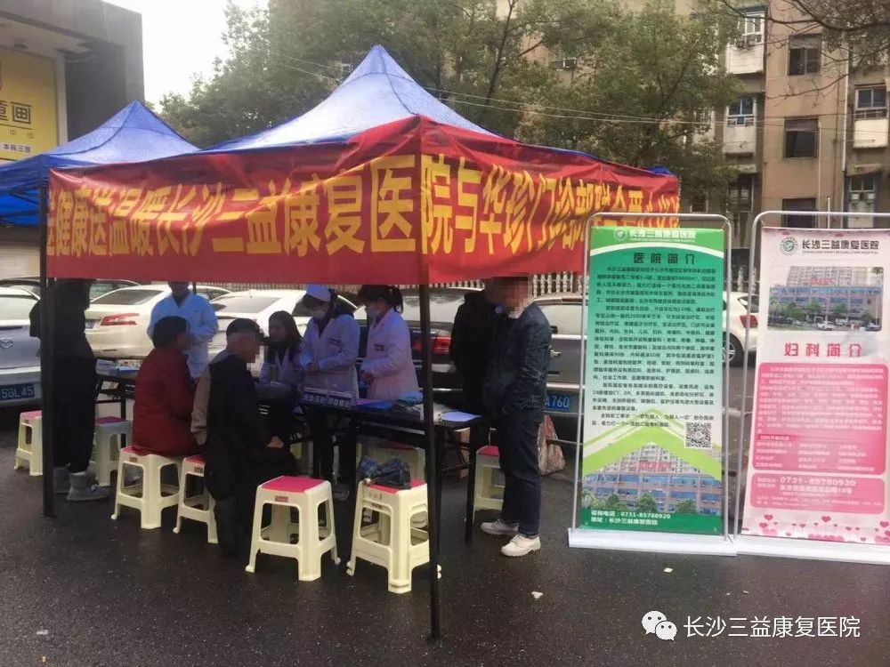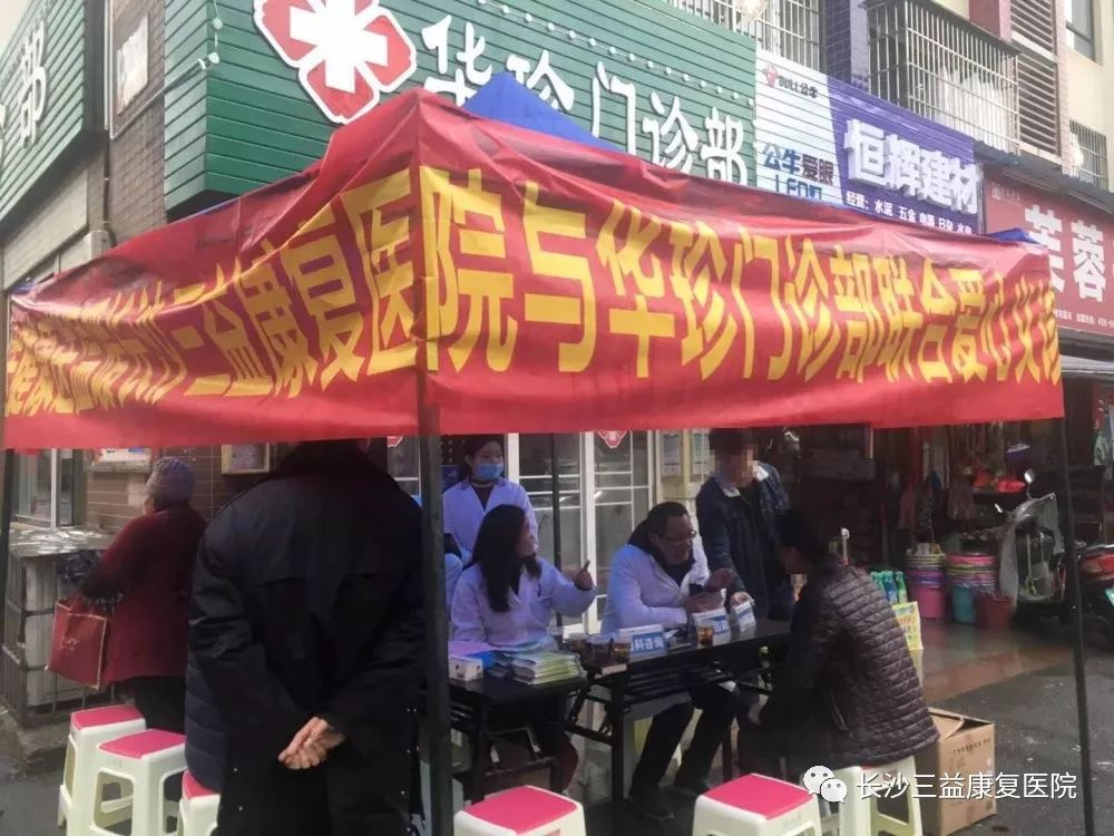 2019年12月28日上午7点30分,我们长沙三益康复医院康复科义诊小分队前往长沙市天心区加加大街,与长沙市天心华珍门诊部联合举行“送健康送爱心”的义诊活动。到达目的地以后,天公不作美下起了大雨,但是我们义诊小分队成员不顾一切的冒着大雨顶着凛冽的寒风搭帐篷拉横幅摆放凳子和义诊必需用品。早上天刚刚蒙亮的时候,医护人员就一切准备就绪了,附近小区居民来免费量血压,测血糖的人就络绎不绝,有一位大爷关心的问:“这么寒冷的雨天你们也还像海报上宣传的时间一样如约而至,真的是太辛苦了,谢谢你们”,我们医院彭主任笑着说:“没有关系的,大爷,送健康送温暖,风雨无阻。”