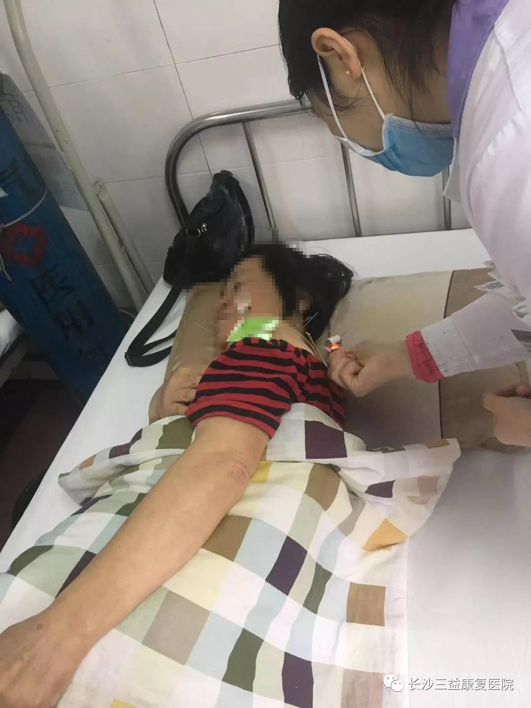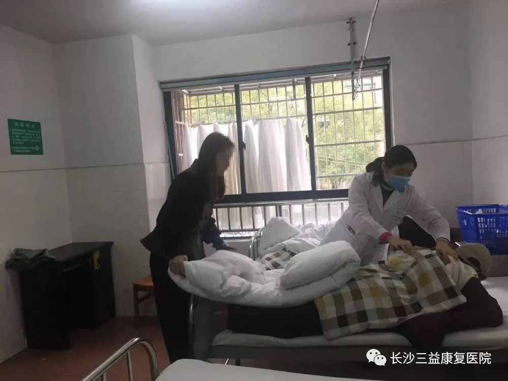 康复科治疗室治疗师长尹金文指导病人做康复训练。