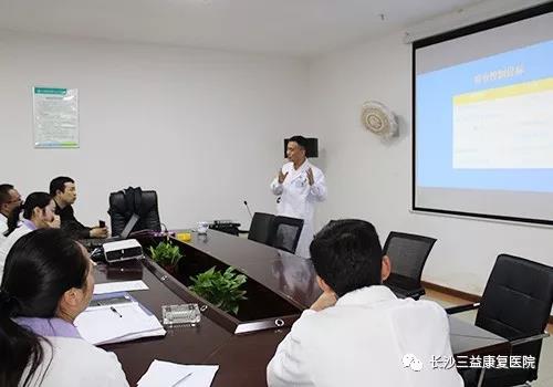 近日,中南大学湘雅附二医院老年病科主任杨宇教授来我院指导工作,首先杨教授与三益康复医院章院长等医生团一行针对住院部的疑难病病患进行联合查房会诊,并举办了针对我院收治病人情况(老年病、慢性病、康复病人等)开展讲座,主要内容为糖尿病方面。同时在营养、运动指导提出切实可行的建议,我院院长章钊、康复科主任阮雅丽等众多医生、治疗师和护士参加了此次讲座。